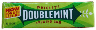 Overall: Ladies and gentlemen, sing the lyrics with me, “Double your pleasure, double your fun. It's the right one, the Doublemint gum.” They make a solid case here. But I have to ask-- is it really worth ten calories of sugar? Don't get me wrong, I'm not on a diet, but this gum is really good, and I'd like to eat a lot of it. Does that ten calories of sugar that can rot your teeth and that might count in some people's journals as “points” really bring this gum that far above sugar-free varieties of nearly the same caliber? I guess we'll just have to wait for all those sugar-substitute cancer study results to decide.